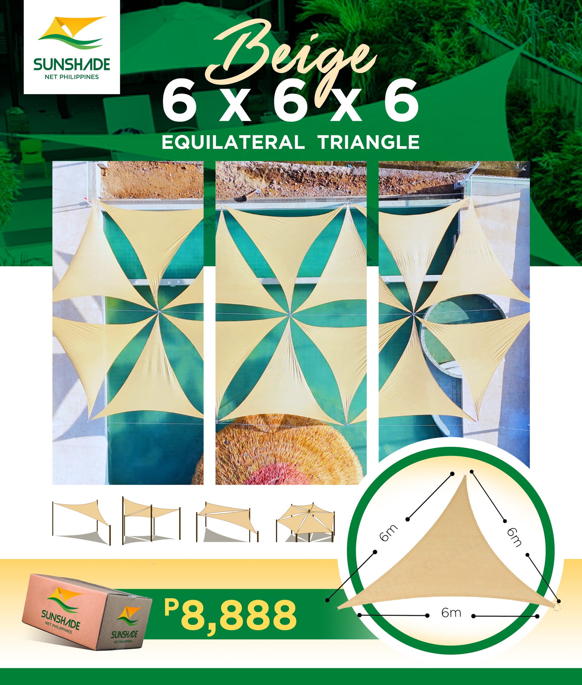 Triangular Sailshade Net 6x6x6M